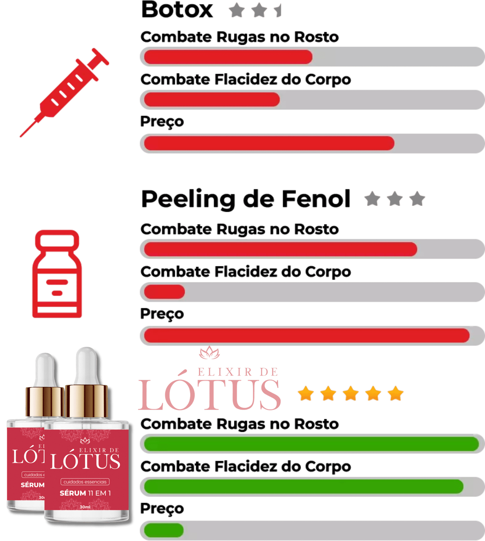 Fizemos um teste de laboratório com Elixir de Lótus e seus concorrentes mais vendidos aqui no Brasil para assim, avaliar seus resultados estéticos no mercado.